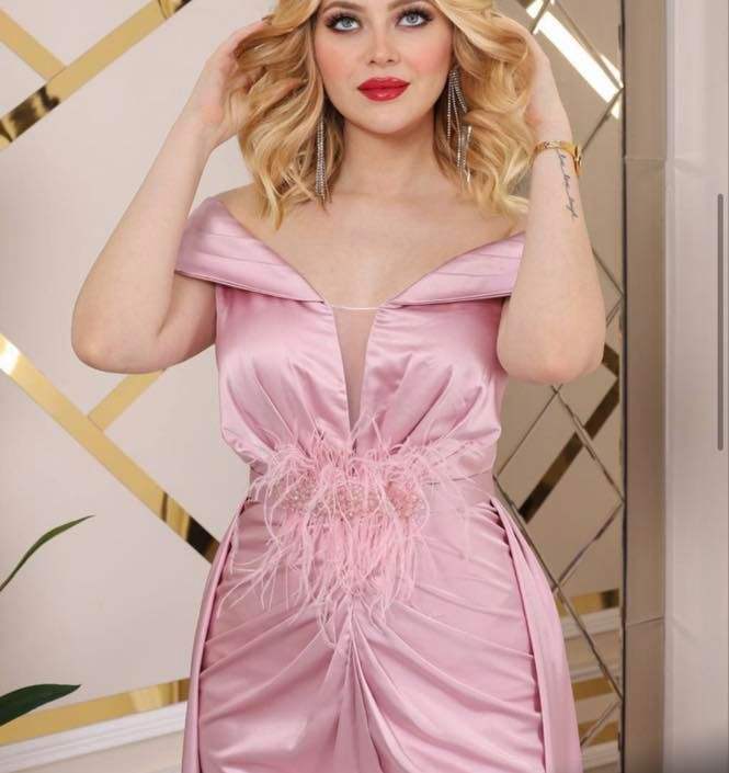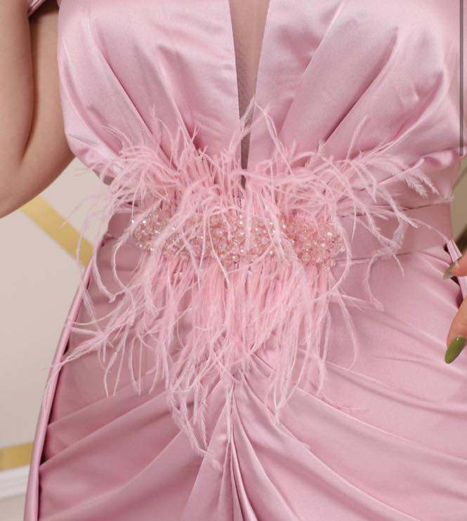 - Привличане на внимание: Розовият цвят и разкроят на роклята са перфектни за специални събития и вечерни излизания.